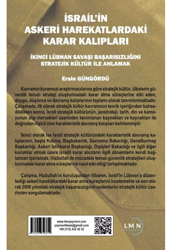 İSRAİL'İN ASKERİ HAREKATLARDAKİ KARAR KALIPLARI-İKİNCİ LÜBNAN SAVAŞI BAŞARISIZLIĞINI STRATEJİK KÜLTÜR İLE ANLAMAK-ERSİN GÜNGÖRDÜ