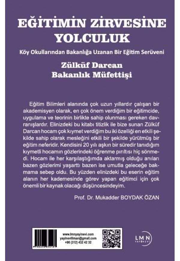 Eğitim Bilimleri alanında çok uzun yıllardır çalışan bir akademisyen olarak, en çok önem verdiğim bir eğitimcide, uygulama ve teorinin birlikte sahip olunması gereken davranışlardır. Elinizdeki bu kitabı titizlik ile bize sunan Zülküf Darcan hocam çok kıymet verdiğim bu iki özelliği en etkili şekilde sahip olarak mesleğini etkili bir şekilde yürütmüş bir eğitim neferidir. Kendisini 20 yılı aşkın bir süredir tanıdığım kıymetli hocamın gözlerindeki öğrenme pırıltısı hiç sönmedi. Hocam ile her karşılaştığımda aktarmış olduğu anıları bazen gözlerimi yaşarttı bazen ise umutla geleceğe bakmama sebep oldu. Bu yüzden elinizdeki bu eserin eğitim alanın her kademesinde görev yapan eğitimci için çok önemli bir kaynak olacağı düşüncesindeyim.
